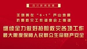 王晓晖在“6•1”芦山地震抗震救灾工作调度会上强调 继续全力做好抢险救灾各项工作 最大限度保障人民群众生命财产安全