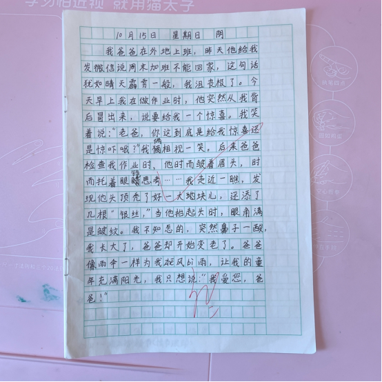 晋兆东写给女儿11岁生日的信(节选)。人民网记者 张玉琳摄